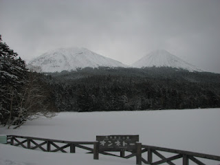ロープウェイ山麓駅の食堂で昼食をしました。窓からは綺麗な雪景色がみえます。